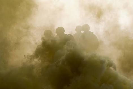 an eerie silence envelopes the war zone,